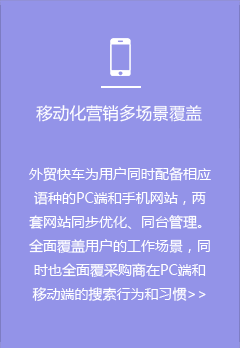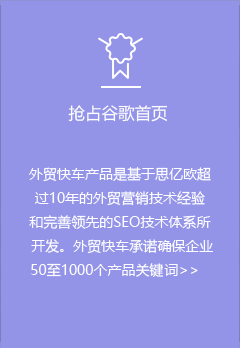外貿(mào)快車(chē)是基于大數(shù)據(jù)和云計(jì)算的智能網(wǎng)絡(luò)營(yíng)銷(xiāo)系統(tǒng)平臺(tái)。依托五大功能系統(tǒng),幫助外貿(mào)企業(yè)智能創(chuàng)建多語(yǔ)種營(yíng)銷(xiāo)型網(wǎng)站和先進(jìn)的VR展示網(wǎng)站,通過(guò)采購(gòu)商數(shù)據(jù)挖掘,以及SEO、SNS等多渠道網(wǎng)絡(luò)營(yíng)銷(xiāo),實(shí)現(xiàn)全球推廣和新興市場(chǎng)開(kāi)發(fā)。