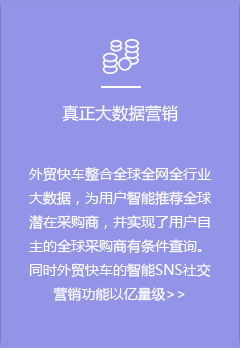 潛在采購(gòu)商和詢(xún)盤(pán)客戶,都進(jìn)行SNS深度挖掘了解企業(yè)情況。SNS可以讀取外貿(mào)快車(chē)網(wǎng)站上的產(chǎn)品進(jìn)行發(fā)布,發(fā)布后留下該產(chǎn)品的網(wǎng)址讓有興趣的用戶再點(diǎn)擊進(jìn)入外貿(mào)快車(chē)網(wǎng)站,為外貿(mào)快車(chē)網(wǎng)站帶去流量,再轉(zhuǎn)換成詢(xún)盤(pán)。同時(shí),SNS營(yíng)銷(xiāo)系統(tǒng)又可以進(jìn)行商業(yè)公司挖掘,挖掘出的商業(yè)公司與潛在采購(gòu)商進(jìn)行數(shù)據(jù)對(duì)比融合,更進(jìn)一步撐握企業(yè)情況,再進(jìn)行精準(zhǔn)聯(lián)系,獲得SNS詢(xún)盤(pán)。